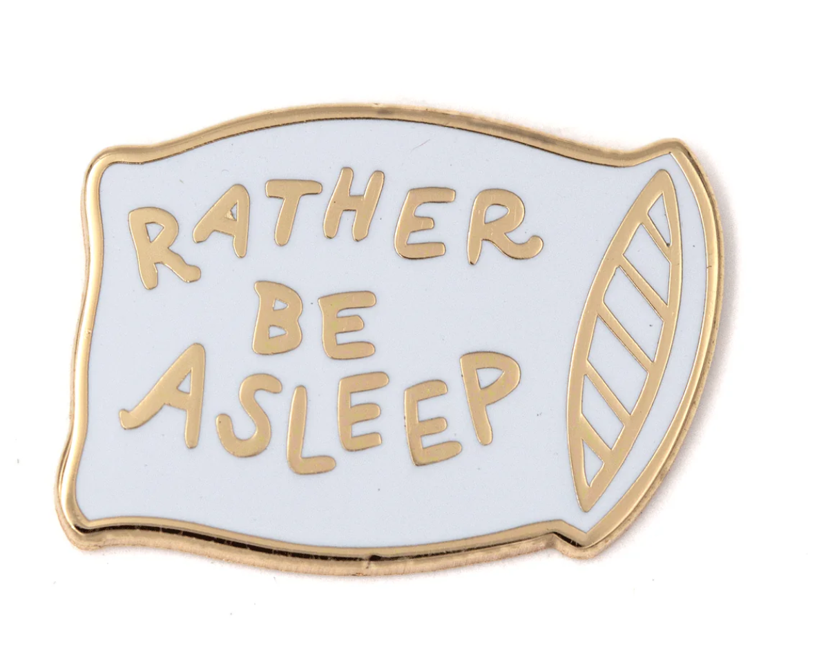 Zzzz Gold pin with colored enamel Rubber backing Measures about 1"